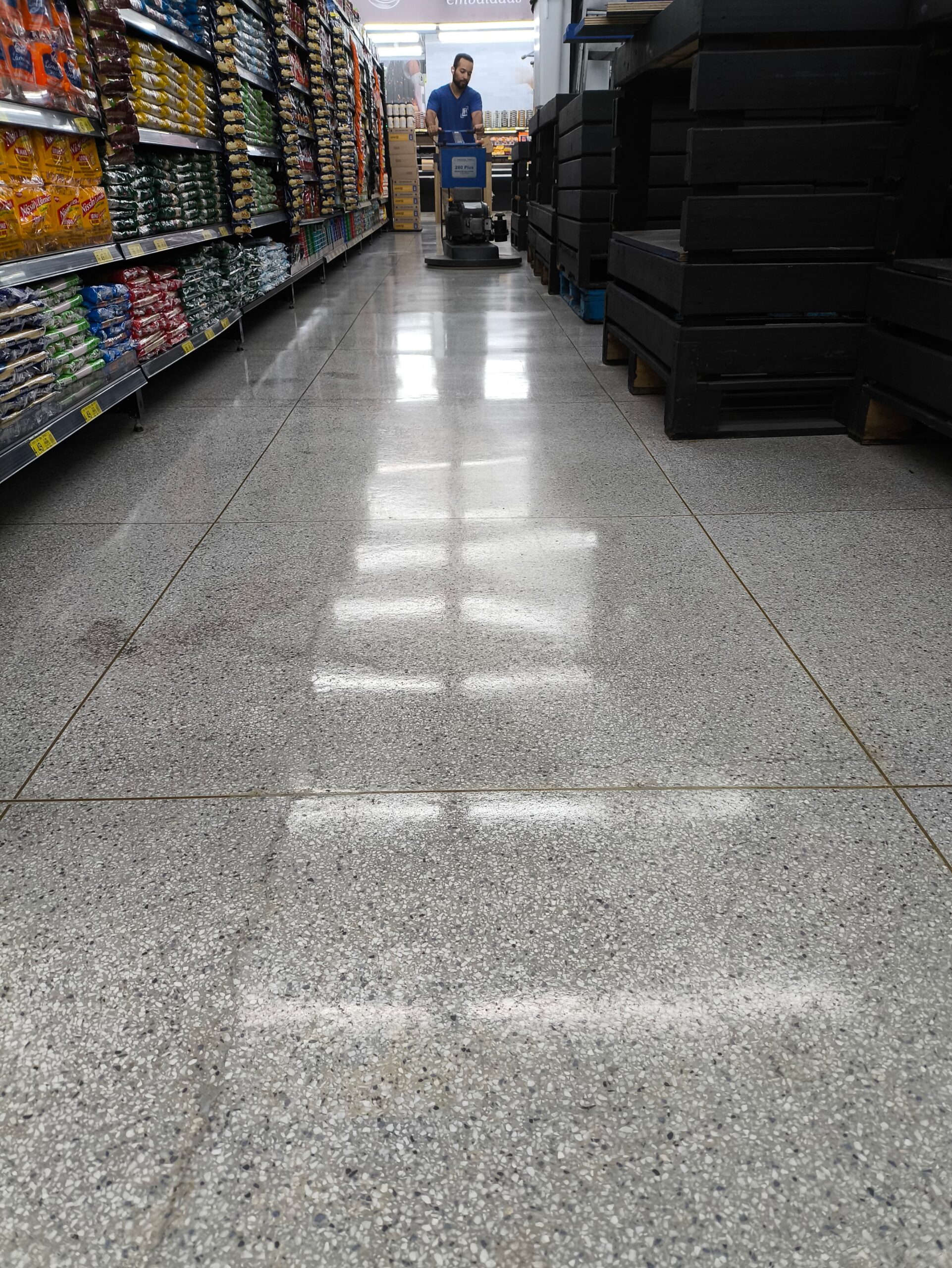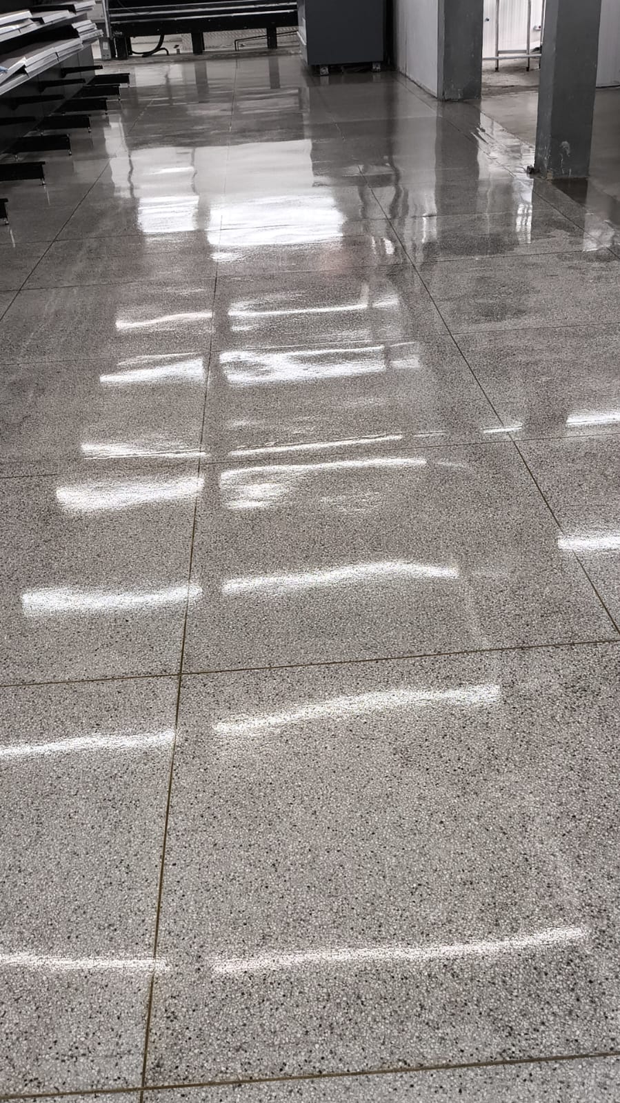 Inspeção do Piso: Analisamos as condições da superfície para identificar desgastes, fissuras, manchas ou áreas que precisem de reparo antes do serviço.